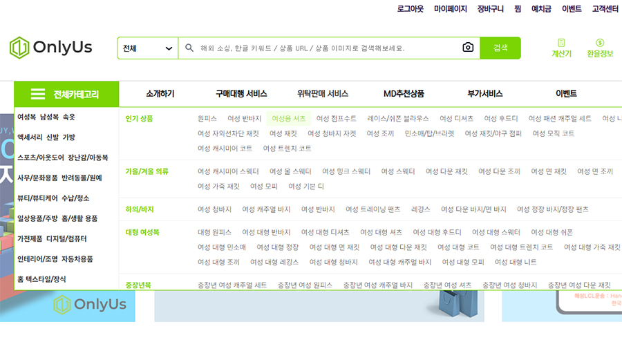 온리어스에서 제공하는 상품 카테고리 메뉴를 통해 상품 유형별로 탐색하며 상품을 찾을 수 있습니다.